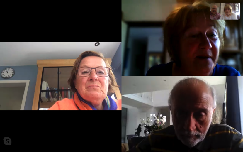 een sfeerbeeld van de video-call met de bestuursleden van Neos Diest